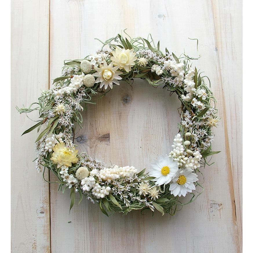 プレゼントにもいかがですか 手作り ドライフラワー 半月リース 20センチリース 白 グリーン ブラウン フラワー リース もぐもぐファーム フラワー 通販 Creema クリーマ ハンドメイド 手作り クラフト作品の販売サイト